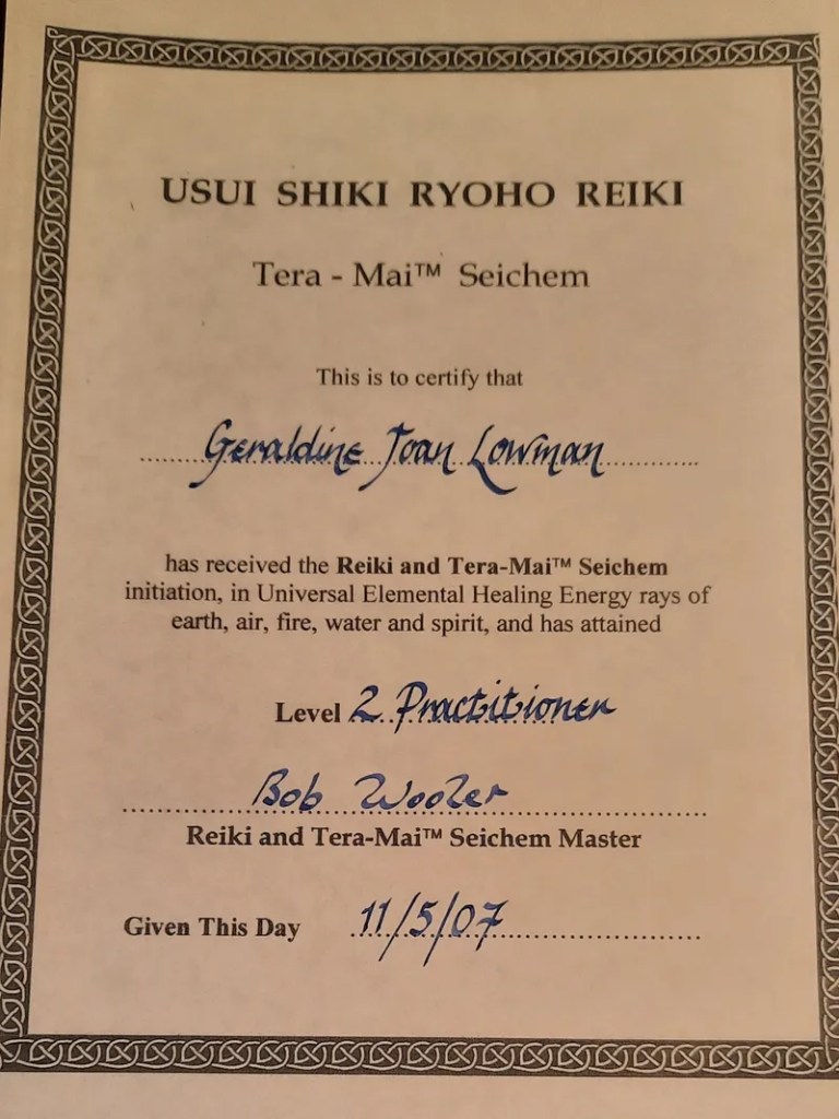 - 2007 I qualified as a Reiki Level 2 practitioner