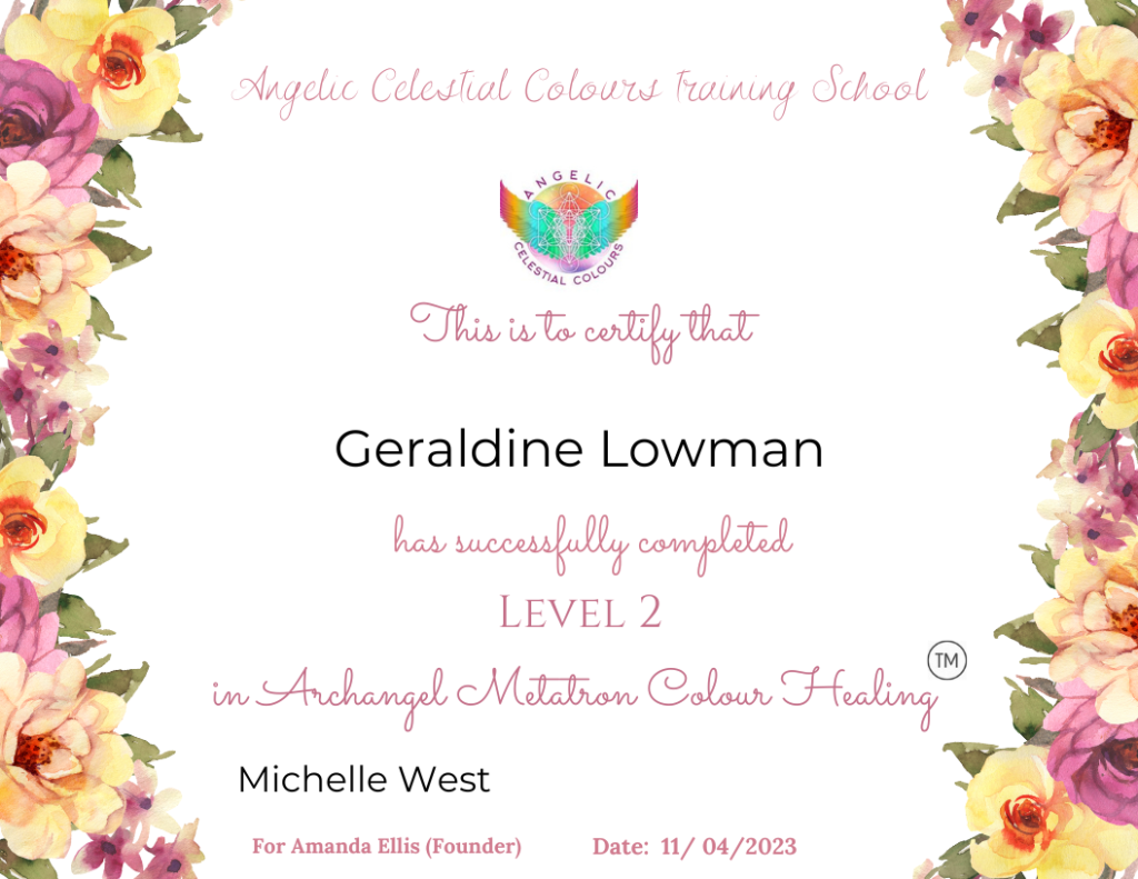 - 2023 I qualified as a Metatron Colour Healing Practitioner
